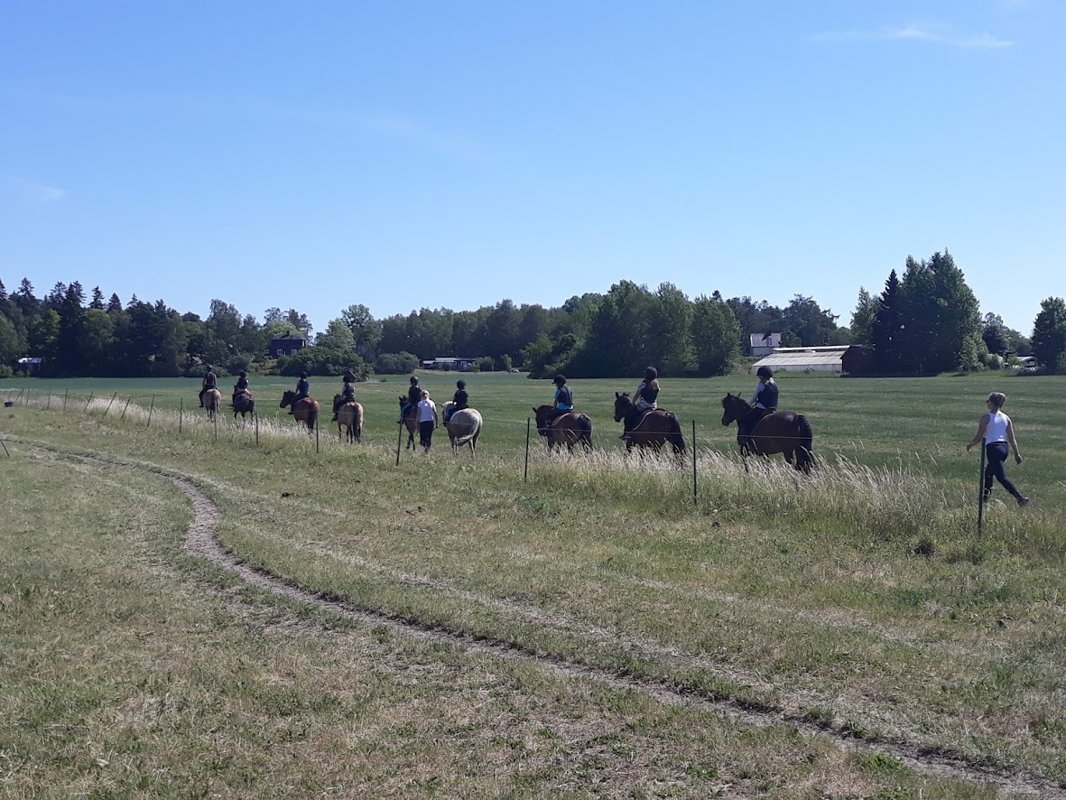 Ridning och hoppning på vallen! God ridvana, du ska kunna kontrollera häst i alla gångarter i en utemiljö och hoppa i galopp.
